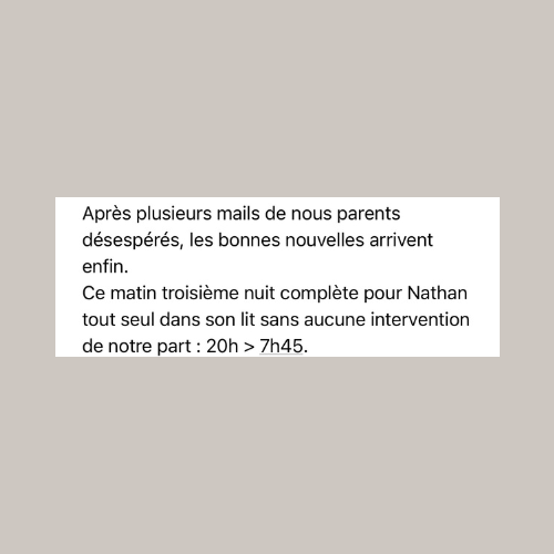 C’est pourquoi nous analysons le rythme complet sur 24 heures, afin de comprendre précisément ce qui influence les nuits de votre enfant.